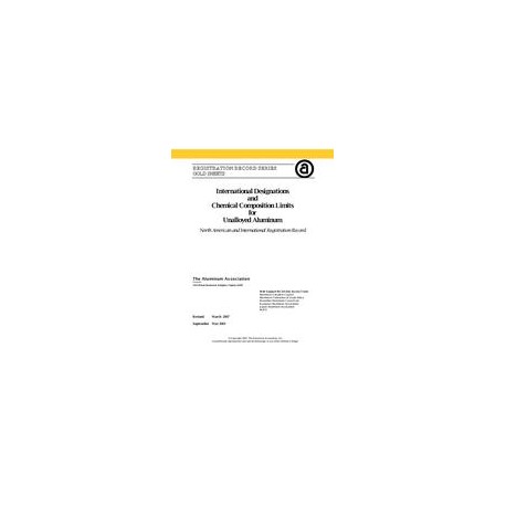 This registration record is the defining source for the international designations and chemical composition limits for unalloyed aluminum referenced in a number of standards and specifications worldwide. Other information includes a list of inactive registrations, the Declaration of Accord on the International Designation System for Unalloyed Aluminum and a list of the Signatories to the Accord.