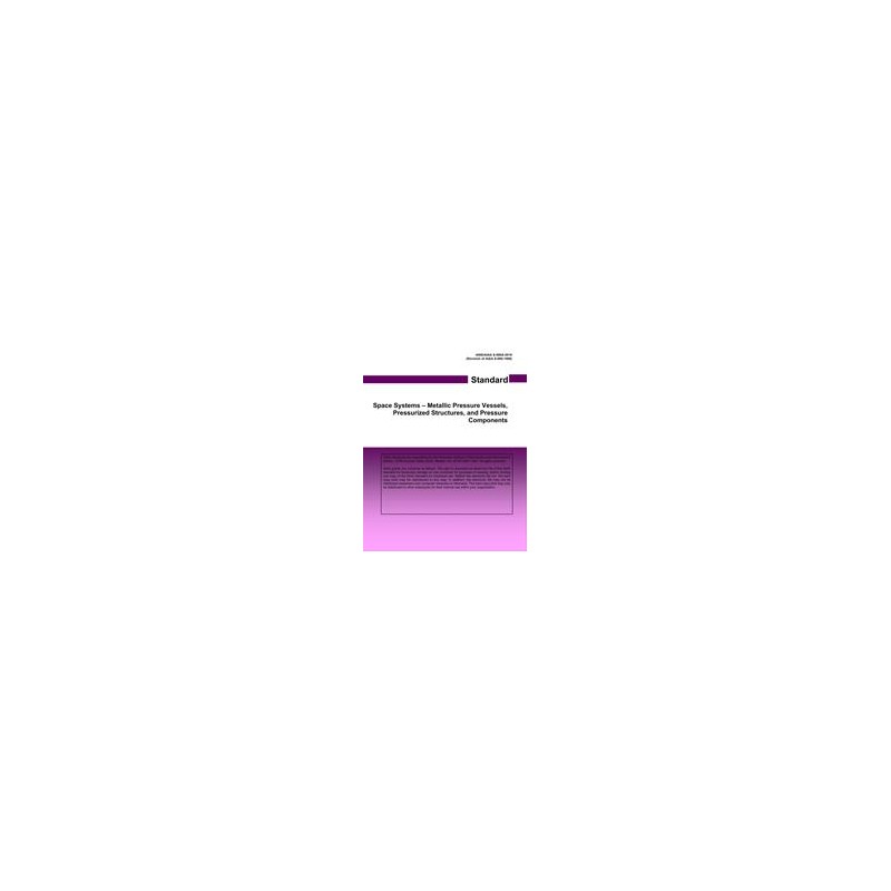 This standard establishes baseline requirements for the design, analysis, fabrication, test, operation, and maintenance of metallic pressure vessels, pressurized structures, batteries, heat pipes, and cryostats, dewars, sealed containers, accumulators, and pressure components such as lines, fittings, hoses, and bellows made of metals. These components are used for pressurized, hazardous, or nonhazardous liquid or gas storage in space systems including spacecraft and launch vehicles.