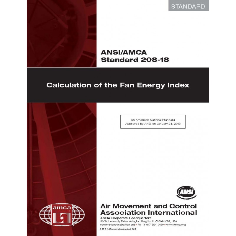 This standard defines the calculation method for the fan energy index (FEI), which is an energy efficiency metric for fansinclusive of motors and drives. This metric provides a standardized and consistent basis to compare fan energyperformance across fan types and sizes at a given fan duty point.