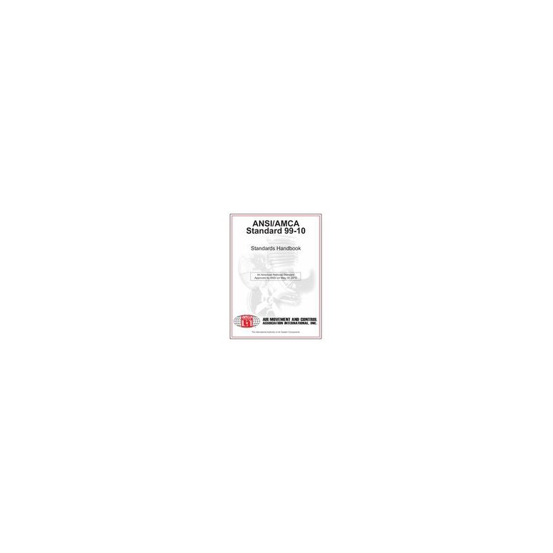 99-0021-01 The Fan Laws 99-0066-01 The AMCA Vocabulary: Definitions 99-0068-03 The AMCA Vocabulary: Product Definitions 99-0070-01 The AMCA Vocabulary: Symbols 99-0098-00 Basic Series of Preferred Numbers 99-0100-76 Metric Units and Conversion Factors 99-0200-00 Charts and Tables 99-0401-86 Classification for Spark Resistant Construction 99-1401-66 Operating Limits for Central Station Units 99-2404-03 Drive Arrangements for Centrifugal Fans 99-2405-03 Inlet Box Positions for Centrifugal Fans 99-2406-03 Designation for Rotation and Discharge of Centrifugal Fans 99-2407-03 Motor Positions for Belt or Chain Drive Centrifugal Fans 99-2408-69 Operating Limits for Centrifugal Fans 99-2410-03 Drive Arrangements for Tubular Centrifugal Fans 99-2412-03 Impeller Diameters and Outlet Areas for Centrifugal Fans 99-2413-03 Impeller Diameters and Outlet Areas for Industrial Centrifugal Fans 99-2414-03 Impeller Diameters and Outlet Areas for Tubular Centrifugal Fans 99-3001-03 Dimensions for Axial Fans 99-3404-03 Drive Arrangements for Axial Fans