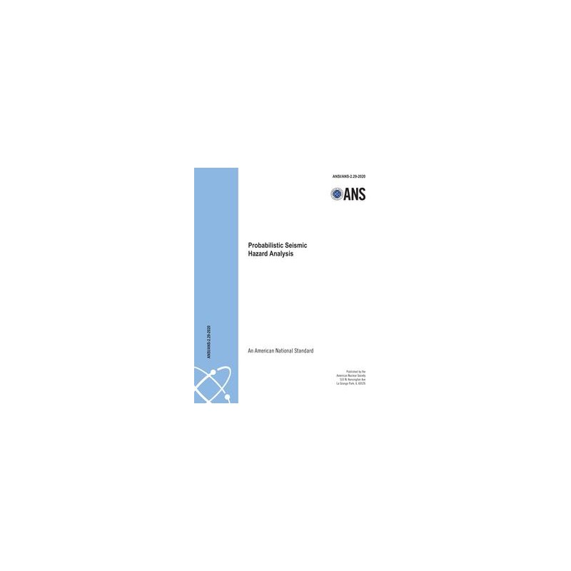 ANS 2.29-2020 provides guidance for performing a probabilistic seismic hazard analysis (PSHA) for developing design and safety evaluation criteria for nuclear facilities. Criteria provided in this standard address various aspects of conducting PSHAs, including purpose, objective, and process; detailed requirements; PSHA framework; seismic source model; ground motion model; site effects; implementation of PSHA for seismic design and seismic probabilistic risk assessment; documentation; quality assurance.Keywords: natural pheonomenon, nuclear safety, nuclear power plant design, nuclear facility design, probabiistic analysis, siting, epistemic uncertainty, ground motion prediction