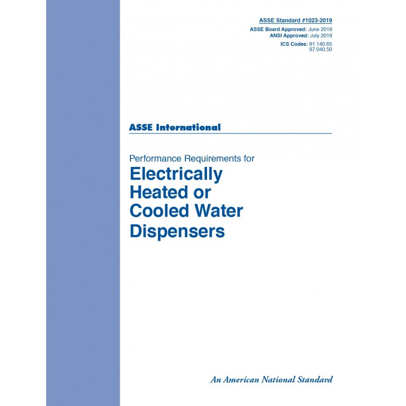 Water dispensers covered by this standard include an integral electrically powered heater or cooler. Products covered by ASSE 1023 include, but are not limited to, under-counter-mounted water dispensing systems, freestanding plumbed systems, freestanding bottled systems, and countertop systems.