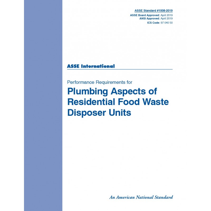 ASSE 1008 applies to the plumbing aspects of residential food waste disposers, which are primarily installed in residential kitchen sink outlets. These devices are designed to reduce food waste particle sizes for discharging into sanitary drainage systems. This standard provides a basis for evaluating the adequacy of appliance design and performance to ensure sanitary conditions and to protect the public from health hazards that could result from improper design or manufacture.