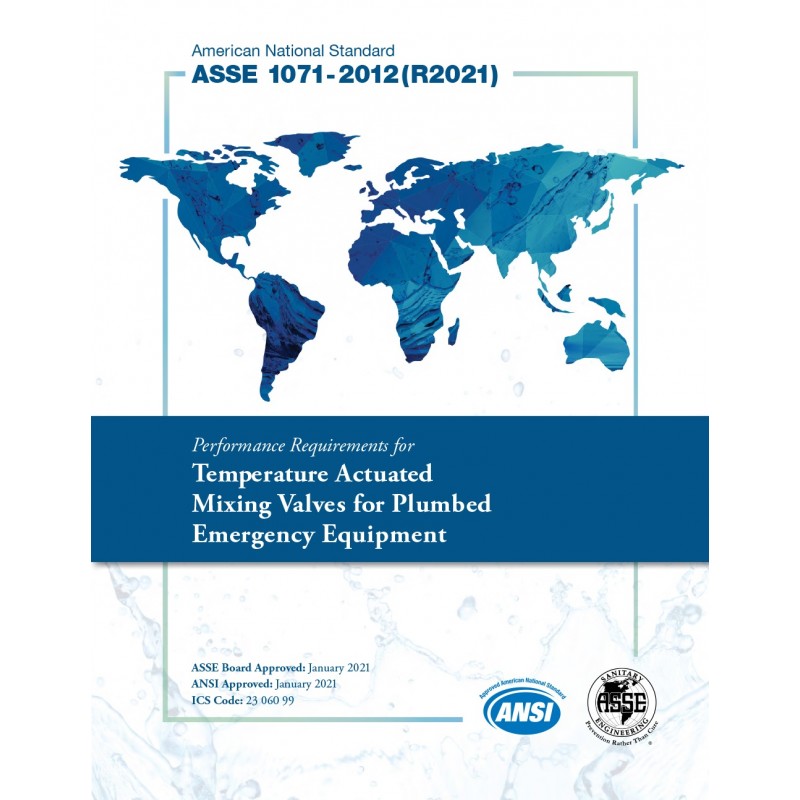 These devices, including eyewash, eye/face wash, drench showers and combination units, are intended to be installed in systems that comply with ANSI Z358.1. These devices shall consist of a hot water inlet connection, a cold water inlet connection, a mixed water outlet connection, a temperature controlling element and a means for adjusting the mixed water outlet temperature while in service. The device shall also have a means to limit the maximum outlet temperature under normal operating conditions. Provisions shall be made so that the temperature cannot be inadvertently adjusted.
