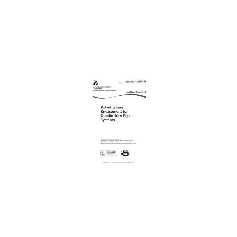 This standard describes materials and installation procedures for polyethylene encasement to be applied to underground installations of ductile-iron pipe. This standard also may be used for polyethylene encasement of fittings, valves, and other appurtenances to ductile-iron pipe systems.