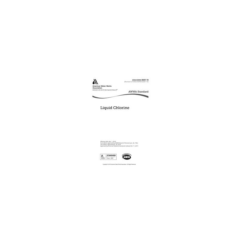 The purpose of this standard is to provide the minimum requirements for liquid chlorine, including physical, chemical, sampling, testing, packaging, and shipping requirements.