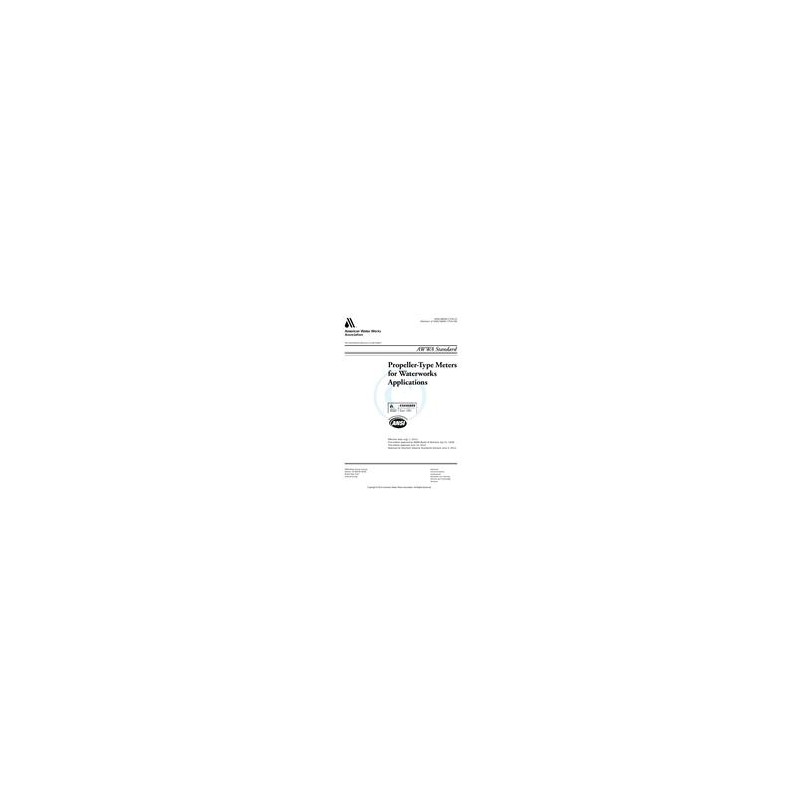 This standard describes the various types and classes of propeller meters in sizes 2 in. (50 mm) through 72 in. (1,800 mm) for waterworks applications. These meters register by recording the revolutions of a propeller set in motion by the force of flowing water striking the blades.