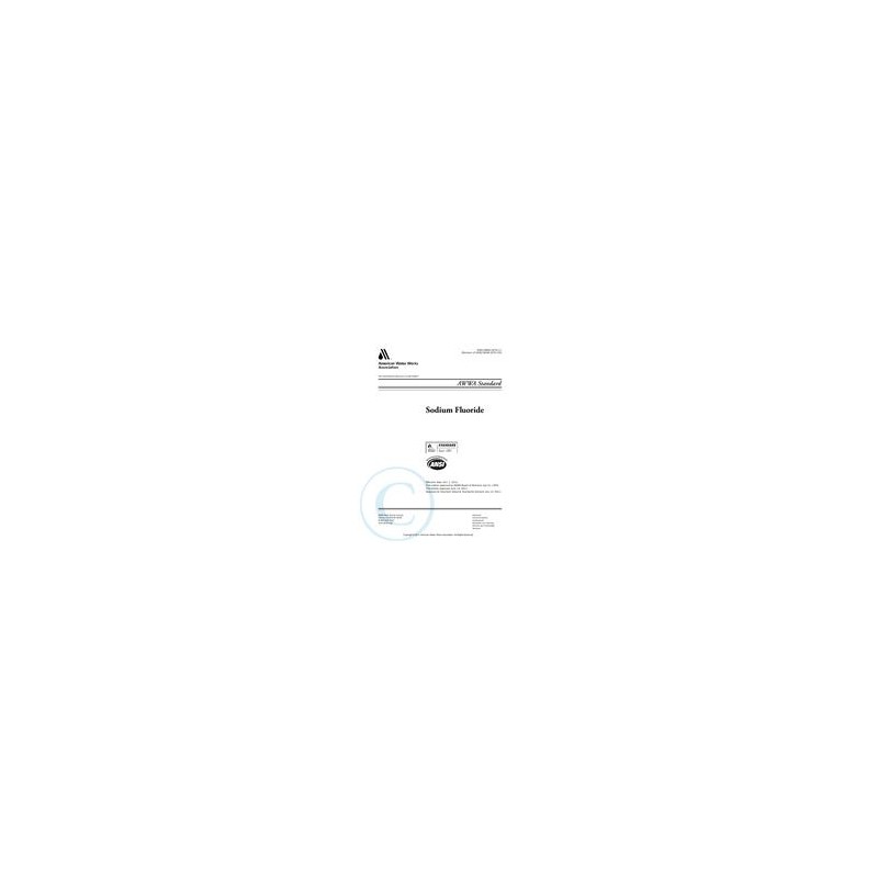 This standard describes sodium fluoride (NaF), coarse crystalline grade, for water supply service application. The purpose of this standard is to provide purchasers, manufacturers, and suppliers with the minimum requirements for sodium fluoride, including physical, chemical, packaging, shipping, and testing requirements.