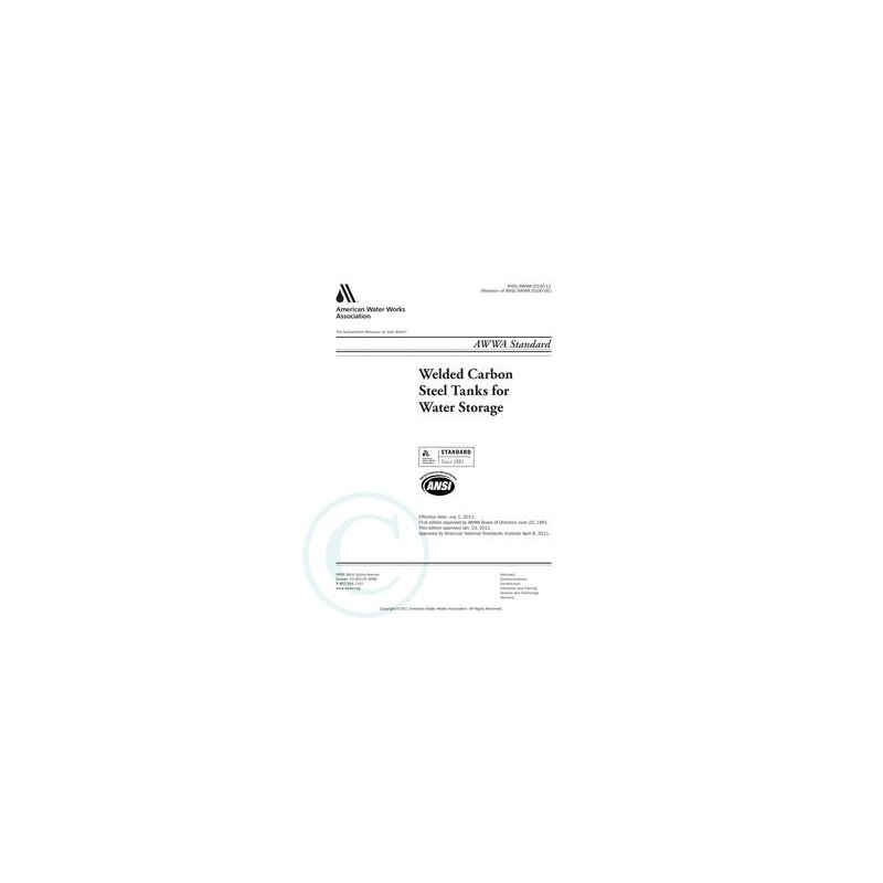 The purpose of this standard is to provide guidance to facilitate the design, manufacture, and procurement of welded carbon steel tanks for the storage of water. This standard does not cover all details of design and construction because of the large variety of sizes and shapes of tanks.