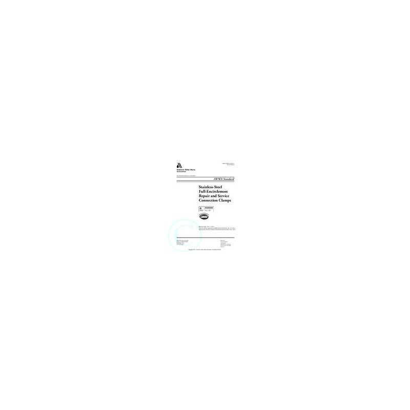 This standard provides minimum requirements for fabricated full-encirclement stainless-steel band clamps for use in the repair or service connection of potable water, wastewater, and reclaimed water piping systems.
