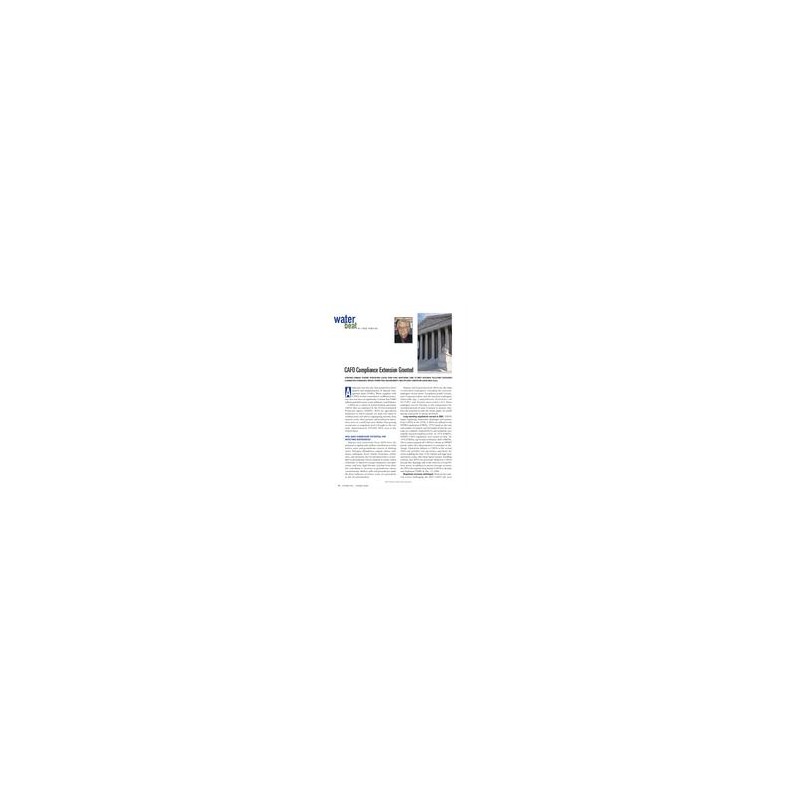 This article discusses an extension granted by the U.S. Environmental Protection Agency (USEPA) to confined animal feeding operations (CAFOs) to meet the National Pollutant Discharge Elimination Standards (NPDES) to February 27, 2009. Additional time has also been granted for developmentand implementation of nutrient managementplans (NMPs). The article also discusses the significant potential that animal feeding operations (AFOs) have for affecting watersheds. Includes 7 references.
