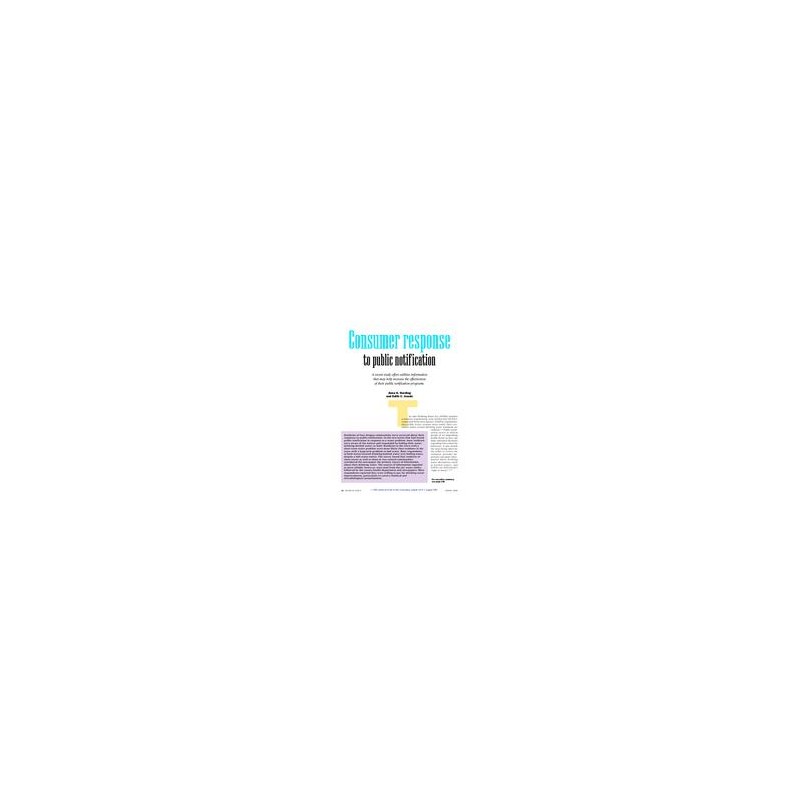 Residents of four Oregon communities were surveyed about their responses to publicnotification. In the two towns that had issued public notification in response to a water problem, most residents were aware of the notices and responded by boiling their water, drinking bottled water, or both. Residents in the town with a short-term water problem were more likely than residents in the town with a long-term problem to boil water. Most respondents in both towns favored drinking bottled water over boiling water, despite a boil-water notice. The survey found that residents of these towns as well as those in two control communities considered the newspaper the primary source of information about their drinking water. The sources of information regarded as most reliable, however, were mail from the city water utility, followed by the county health department and newspapers. Most respondents reported they were willing to pay for drinking water improvements, particularly to correct chemical and microbiological contamination. Includes 45 references, table, figures.