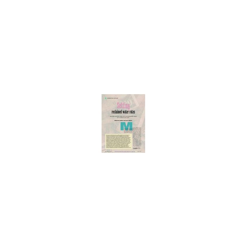 The use of reclaimed water to offset potable water demands is becoming more popular. Setting reclaimed water rates and charges is an important factor in establishing and operating a reclaimed water system. This process is complex because it often costs more to provide reclaimed water than it does to provide potable water even though reclaimed water is generally of lower quality. The long-term benefits of reclaimed water, however, are significant enough that most utilities want to encourage its use. To illustrate how a utility should price reclaimed water in order to encourage its use, this article summarizes results of a survey of rates and pricing strategies used by 23 US utilities that operate reclaimed water systems. In addition, strategies for setting reclaimed water rates are discussed based on a case study developed for the city of Tucson, Arizona, Water Department. In some circumstanes, sound economic justifications exist for pricing reclaimed water below its embedded cost-of-service level. Includes 5 references, tables.
