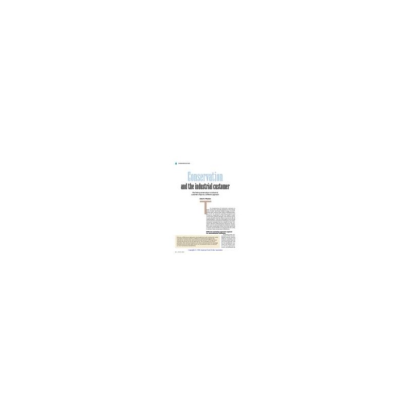 Obvious differences between nonresidential and residential water customer markets call for a different marketing program for industrial, commercial, and institutional sectors. Although basic marketing tenets must be adhered to, the strategies are more complex, the communications are more vertical, and the message focuses more on costs and return on investment than on ethical or environmental sensibilities. Includes 2 references.