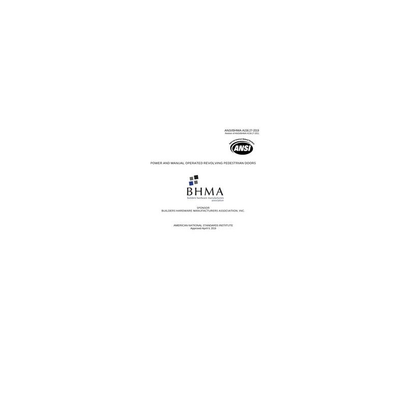 1.1 Requirements in this standard apply to power operated revolving type doors which rotate automatically when approached by pedestrians, some small vehicular use, and manual revolving type doors for pedestrians. Included are provisions to reduce the chance of user injury and entrapment.