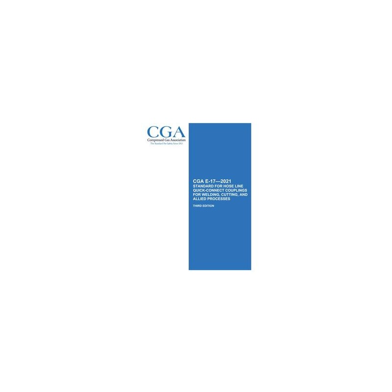 CGA E-17 covers requirements and considerations for design and maintenance of indexed pin-type noninterchangeable welding quick-action couplings. It is the intention of this standard to provide some minimum guidance because of the various designs that exist. This standard applies to quick-connect couplings with integral CGA E-1 or ISO 3253 connections used between regulators, torches and/or other gas welding equipment, sometimes referred to as hose-type quick-connects, for pressures up to 200 psi (1380 kPa).