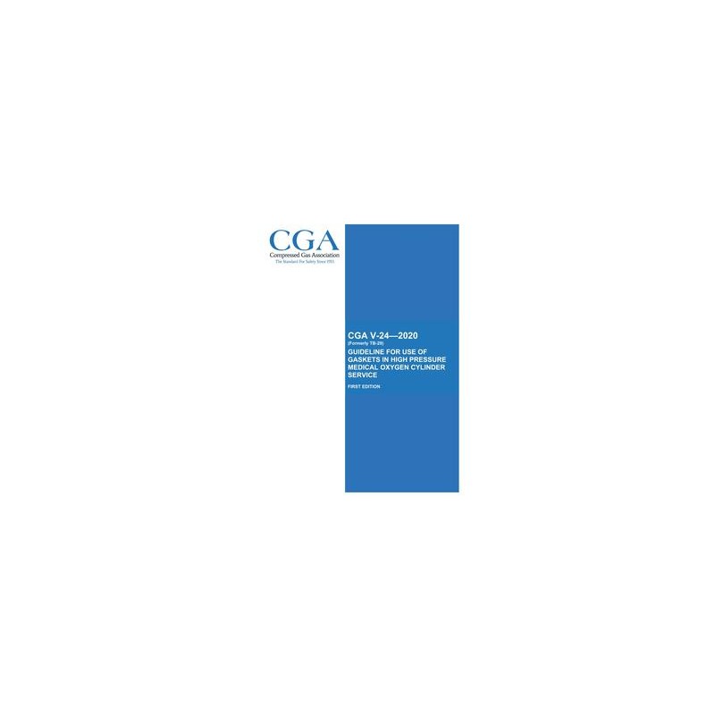 CGA V-24 provides guidelines for the safe use of sealing gaskets in high pressure medical oxygen cylinders with post valves at patient and end user locations. This publication does not apply to cylinder fill plants, valves not designed to accept a sealing washer such as the CGA 540 threaded connection, valve integrated pressure regulators (VIPRs), or portable cryogenic liquid cylinder outlets.