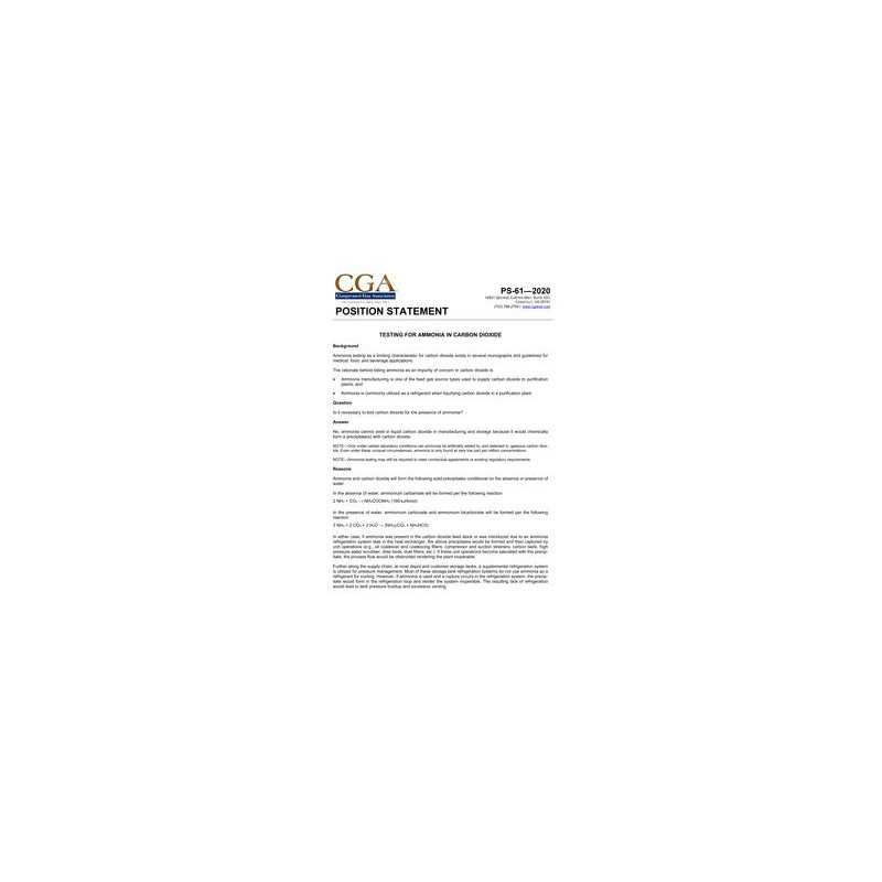 CGA PS-61 CGA Position Statement on Ammonia Testing in Carbon Dioxide, First Edition