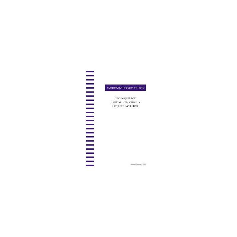Addresses the requirements and the barriers to reducing project life cycle time by 25 percent or more. Discusses both drivers and techniques that need to be in place to succeed when attempting to reduce cycle time. Also identifies the CII Best Practices that have proven to be the most frequently and successfully used in the research case studies.