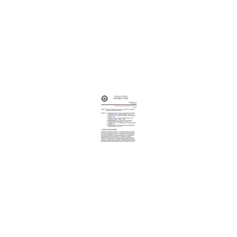 DOD DODI-5010.34 PRODUCTIVITY ENHANCEMENT, MEASUREMENT, AND EVALUATION - OPERATING GUIDELINES AND REPORTING INSTRUCTIONS