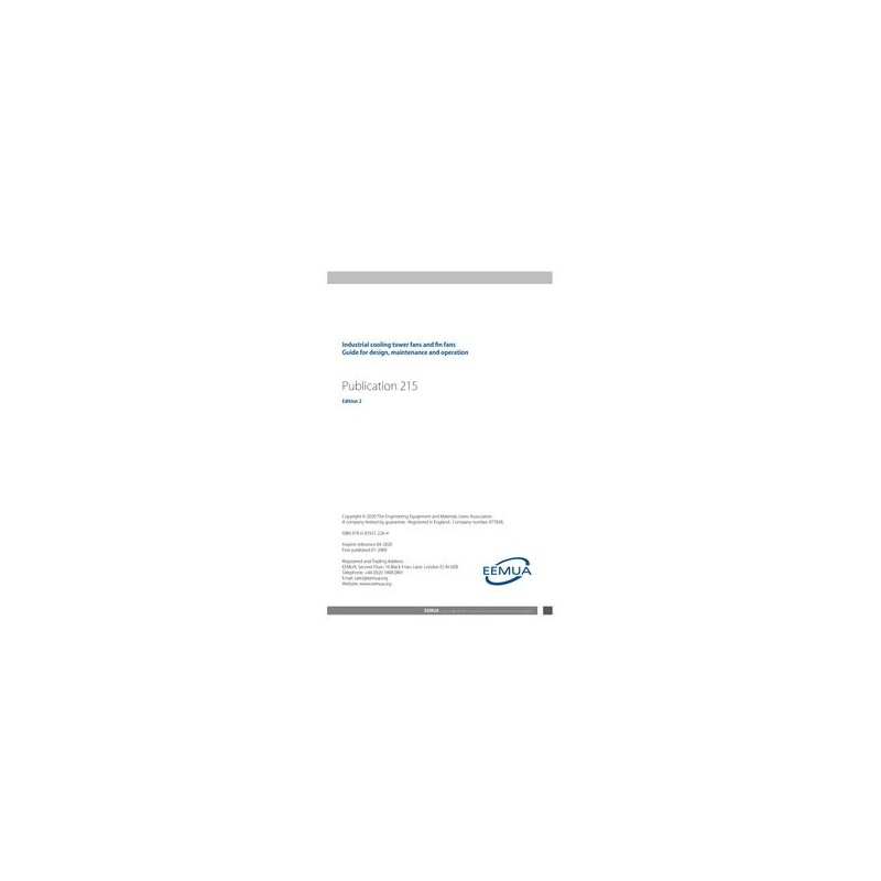 EEMUA Publication 215 addresses the best design, maintenance and operation of mechanical draught cooling tower fans and fin fans used in air cooled heat exchangers. If fans are neglected until they fail, there is often extensive damage to the housing and danger of pieces of blade being thrown out. As well as causing damage to plant, this type of failure presents an unacceptable risk to the safety of personnel. EEMUA 215 sets out the appropriate maintenance practices and gives a framework for the maintenance routines, including specific details of what is required.