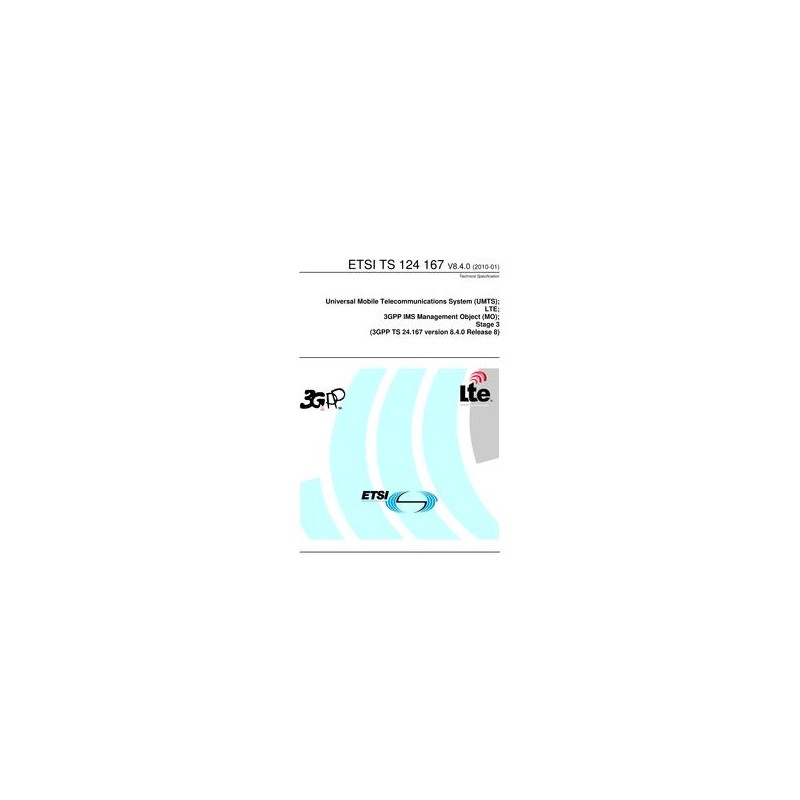 ETSI TS 124 167 Universal Mobile Telecommunications System (UMTS); LTE; 3GPP IMS Management Object (MO); Stage 3 (3GPP TS 24.167 version 8.4.0 Release 8)