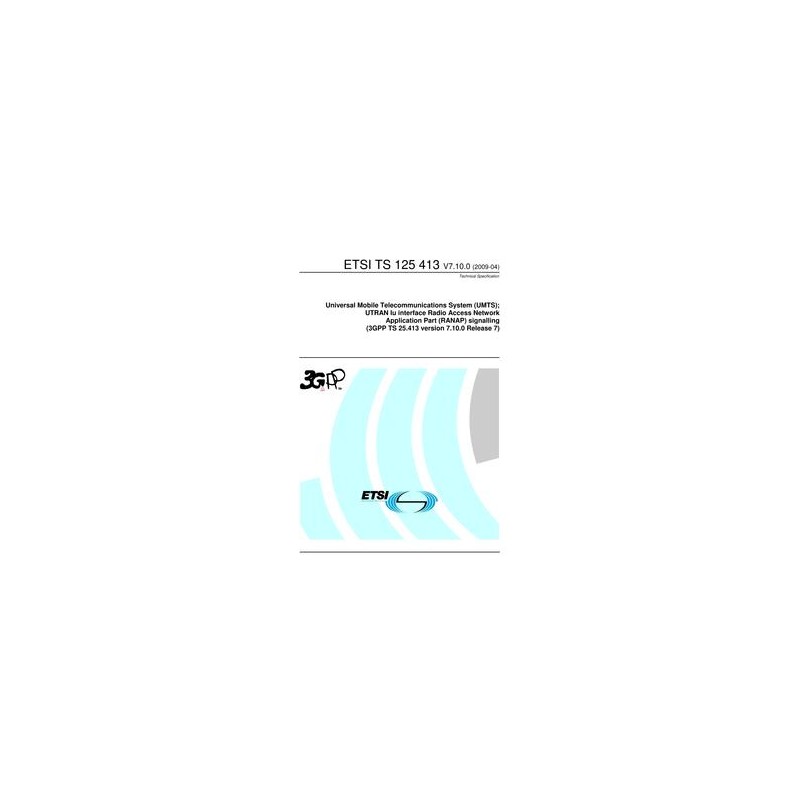 ETSI TS 125 413 Universal Mobile Telecommunications System (UMTS); UTRAN Iu interface Radio Access Network Application Part (RANAP) signalling (3GPP TS 25.413 version 7.10.0 Release 7)