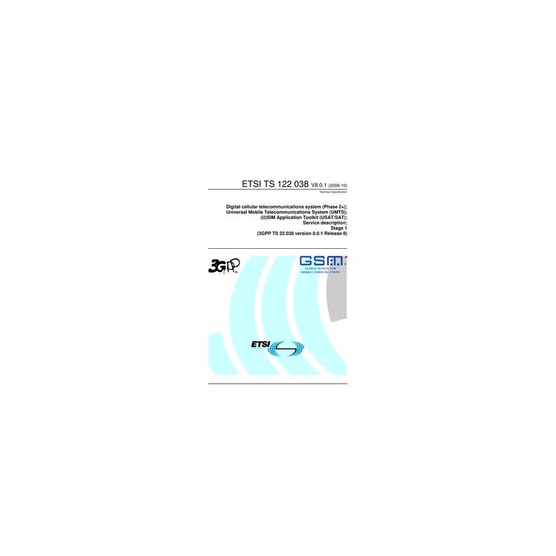 ETSI TS 122 038 Digital cellular telecommunications system (Phase 2+); Universal Mobile Telecommunications System (UMTS); (U)SIM Application Toolkit (USAT/SAT); Service description; Stage 1 (3GPP TS 22.038 version 8.0.1 Release 8)