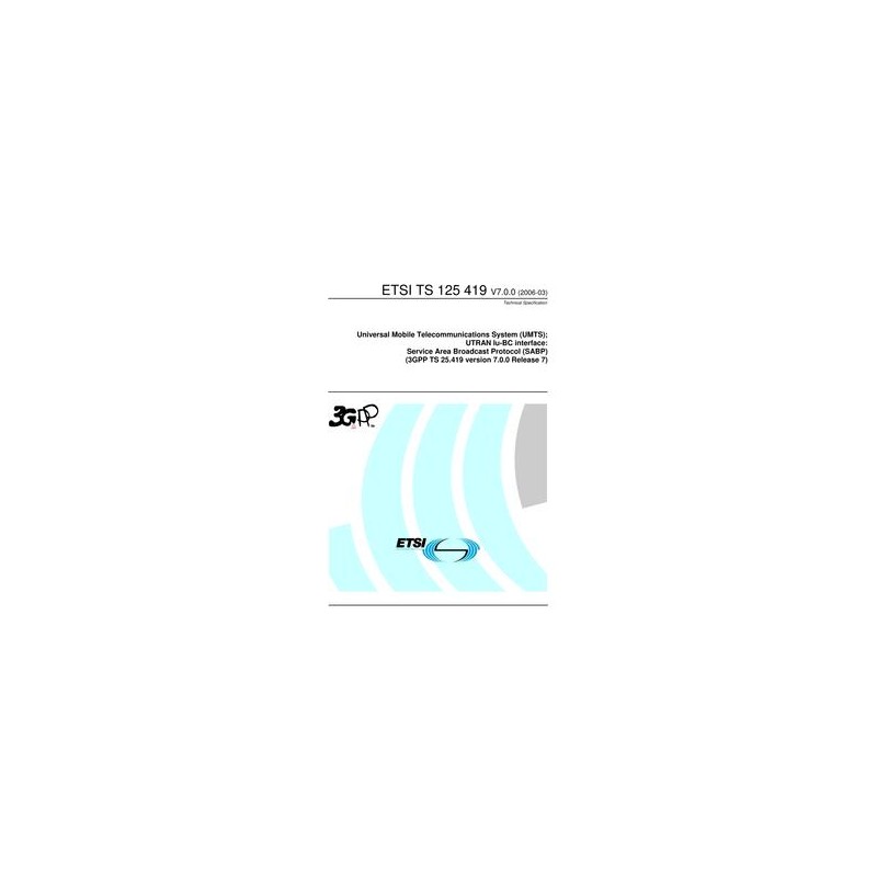 ETSI TS 125 419 Universal Mobile Telecommunications System (UMTS); UTRAN Iu-BC interface: Service Area Broadcast Protocol (SABP) (3GPP TS 25.419 version 7.0.0 Release 7)