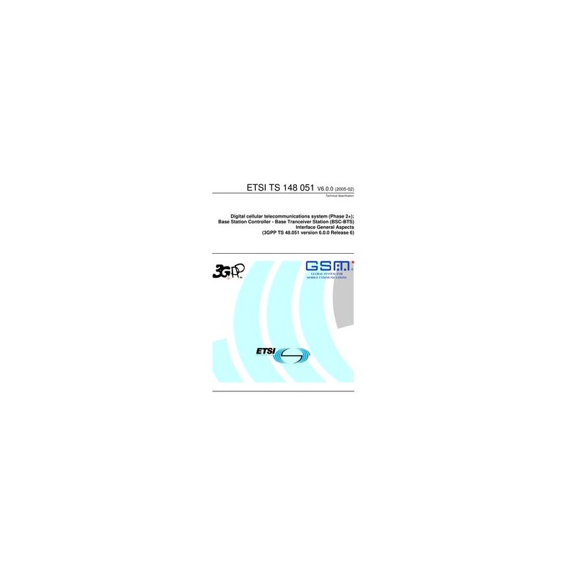 ETSI TS 148 051 Digital cellular telecommunications system (Phase 2+); Base Station Controller - Base Tranceiver Station (BSC-BTS) Interface General Aspects (3GPP TS 48.051 version 6.0.0 Release 6)