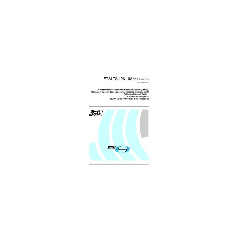 ETSI TS 126 192 Universal Mobile Telecommunications System (UMTS); Mandatory Speech Codec speech processing functions AMR Wideband Speech Codec; Comfort noise aspects (3GPP TS 26.192 version 5.0.0 Release 5)