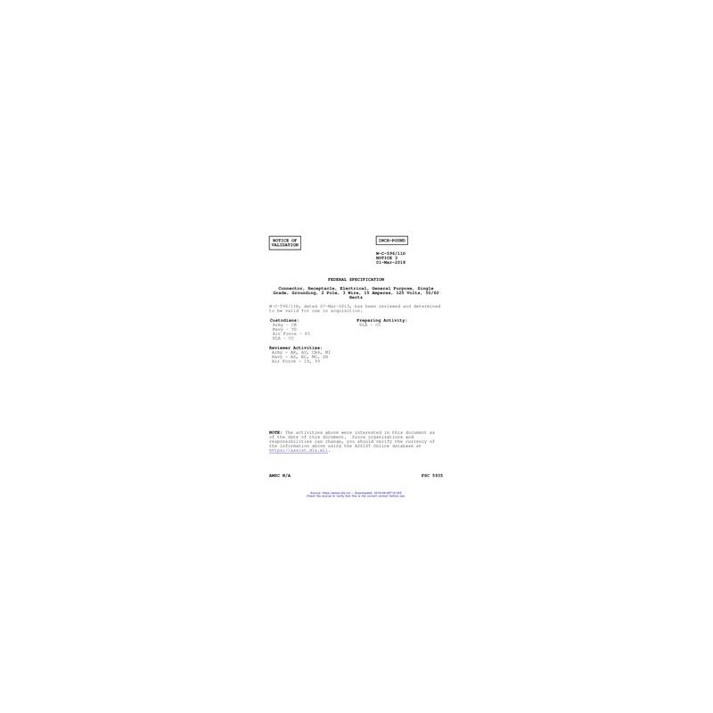 FED W-C-596/11D Notice 3 - Validation 3 CONNECTOR, RECEPTATCLE, ELECTRICAL, GENERAL PURPOSE, SINGLE, GENERAL GRADE, GROUNDING, 2 POLE, 3 WIRE, 15 AMPERES, 125 VOLTS, 50/60 HERTZ