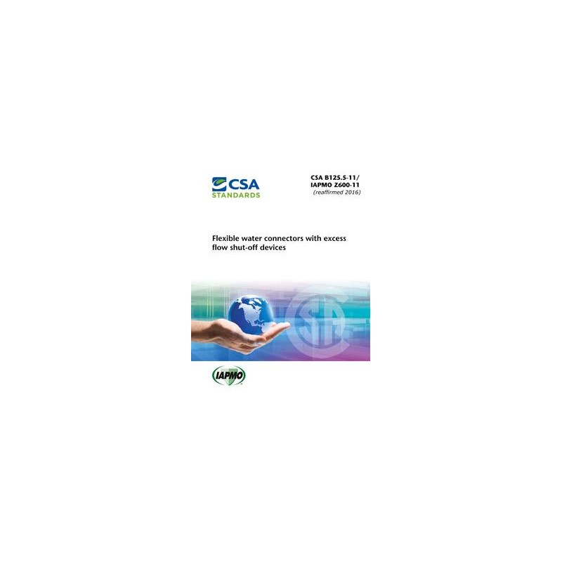 This Standard specifies test methods and markings for flexible water connectors with excess flow shut-off devices.