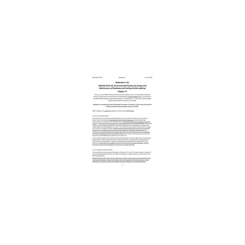 IES RP-8-18 Addendum 1 Addendum to Recommended Practice For Design and Maintenance of Roadway and Parking Facility Lighting