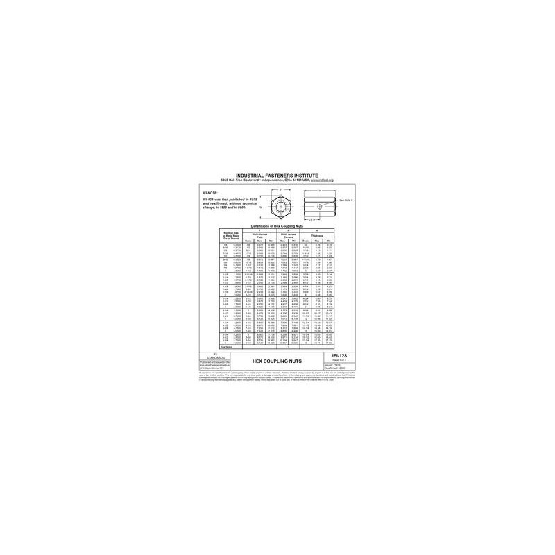 IFI 128 (R2000) [ Withdrawn ] HEX COUPLING NUTS WITHDRAWN (REF. ASME B18.2.2-2010)