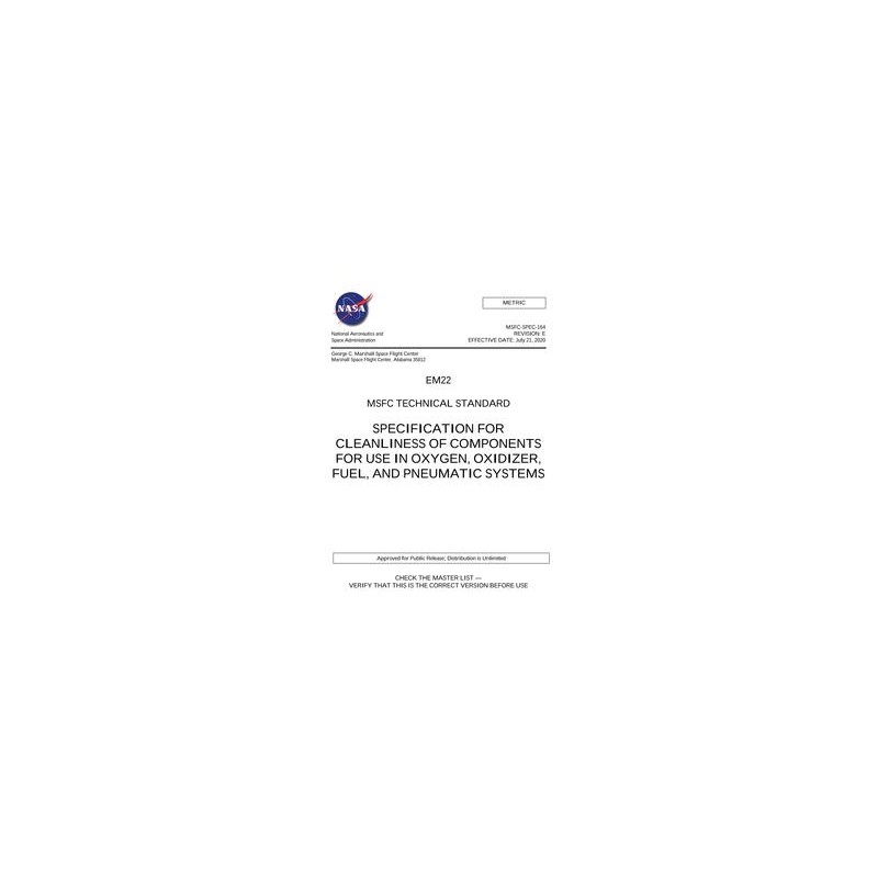 NASA MSFC-SPEC-164 Rev. E Specification for Cleanliness of Components for Use in Oxygen, Oxidizer, Fuel and Pneumatic Systems