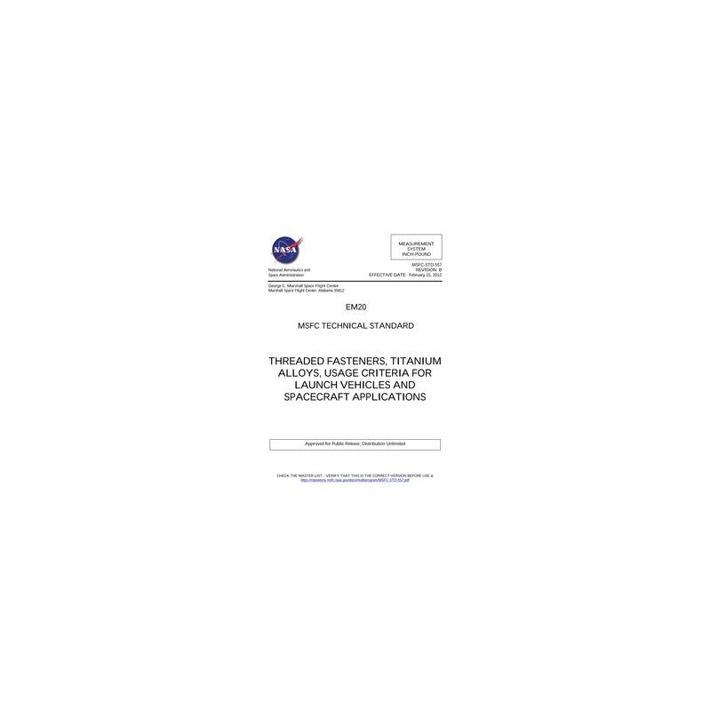 NASA MSFC-STD-557 Rev. B Threaded Fasteners, Titanium Alloys, Usage Criteria for Launch Vehicles and Spacecraft Applications