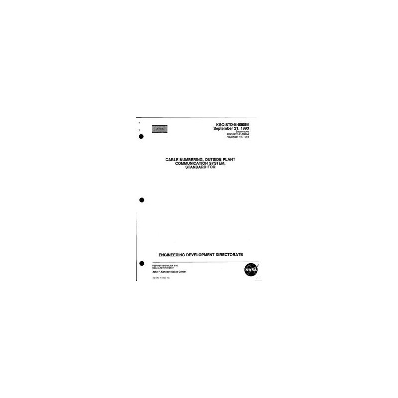 NASA KSC-STD-E-0009 Rev. B w/Change 1 Cable Numbering, Outside Plant Communication System, Standard For, Includes Change 1 (2000-05-26)