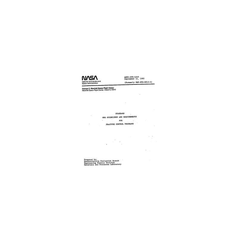 NASA MSFC-STD-1249 STANDARD NDE GUIDELINES AND REQUIREMENTS FOR FRACTURE CONTROL PROGRAMS