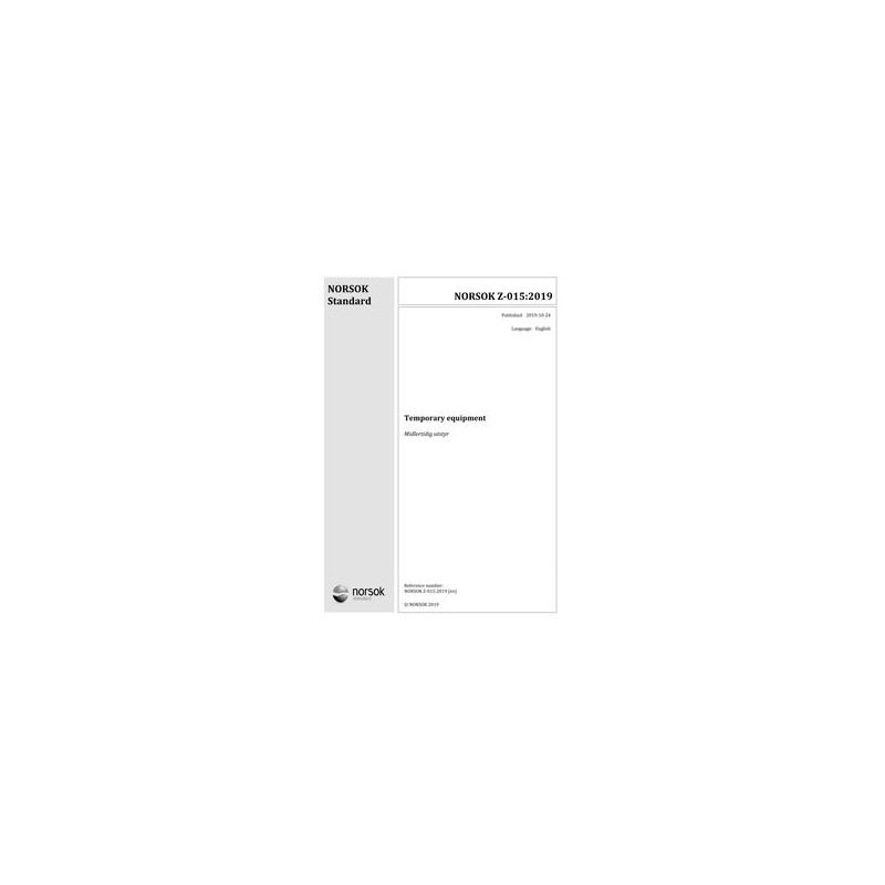 NORSOK Z-015 defines the minimum technical and safety-related requirements for temporary equipment used on installations (fixed and mobile) on the Norwegian continental shelf. This includes verification of design, testing, certification and maintenance of the temporary equipment.