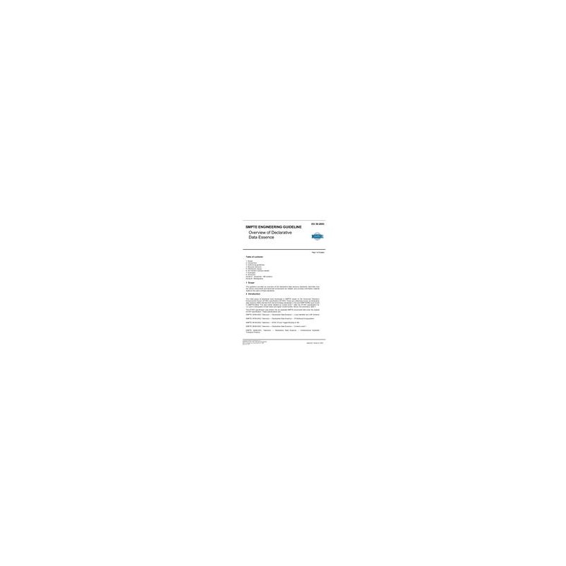 SMPTE EG 39-2003 Overview of Declarative Data Essence