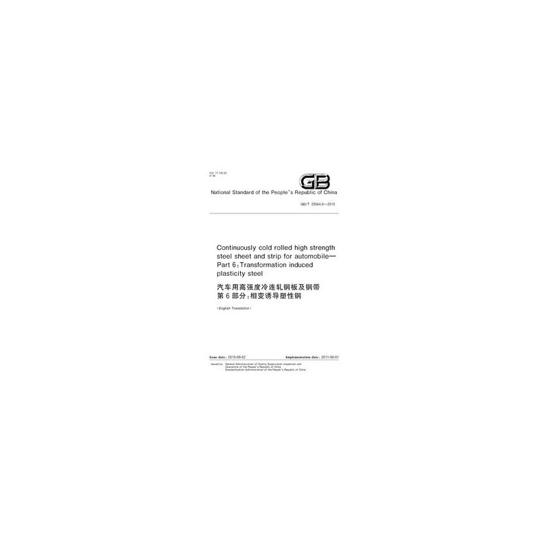 SPC GB/T 20564.6-2010 Continuously Cold Rolled High Strength Steel Sheet And Strip For Automobile -- Part 6: Transformation Induced Plasticity Steel
