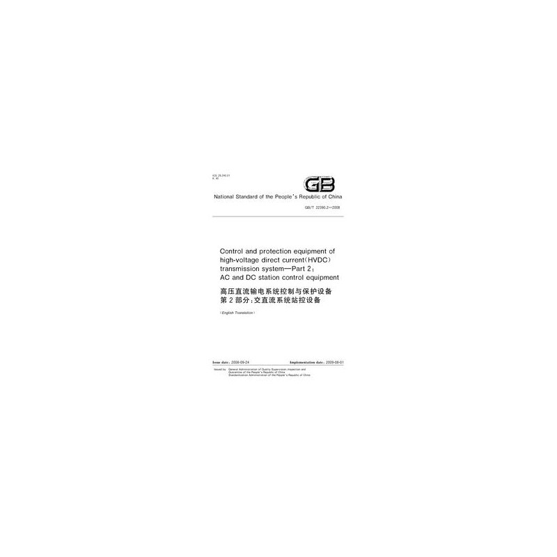SPC GB/T 22390.2-2008 Control And Protection Equipment Of High-Voltage Direct Current (HVDC) Transmission System -- Part 2: AC And DC Station Control Equipment