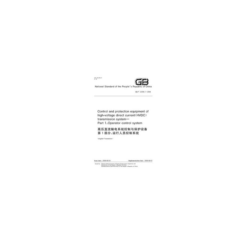 SPC GB/T 22390.1-2008 Control And Protection Equipment Of High-Voltage Direct Current (HVDC) Transmission System -- Part 1: Operator Control System