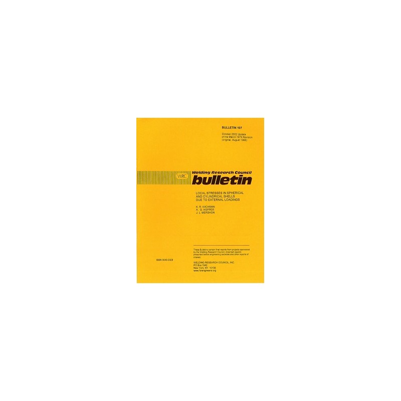 The Bulletin presents the results of an analytical and experimental research program aimed at providing methods for determining localized stresses in cylindrical and spherical pressure vessel nozzle connections subjected to various forms of external loadings. Solutions for elliptical and torispherical shells may also be obtained in the nozzle is in the spherical region of the head; for an elliptical head an equivalent crown radius may be used. Based on the work of P.P. Bijlaard performed in the 1950's and early 1960's, the Bulletin covers the sign conventions, parameters, calculation of stresses, nondimensional curves, and limitations on application for spherical and cylindrical shells and an abridged calculation for maximum stress in spherical shells. The WRC 107 procedure only provides stress computation in the shell, nozzle stress are not computed. This may lead to unconservative results for some shell and nozzle configurations.
