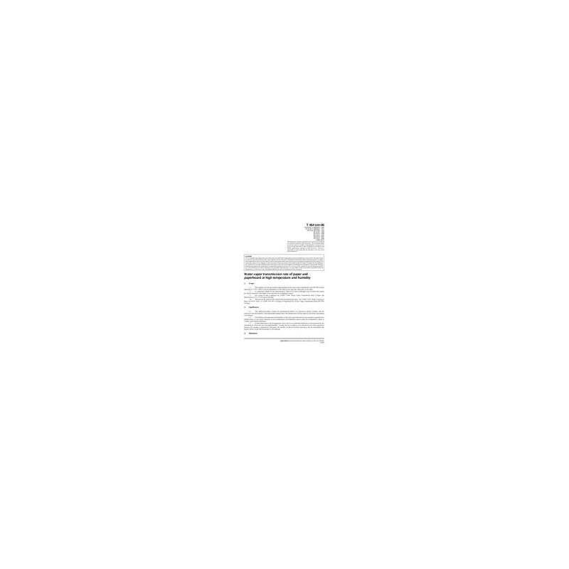 For testing at other conditions see TAPPI T 448 Water Vapor Transmission Rate of Paper and Paperboard at 23 degrees C (73 degrees F) and at 50% RH.