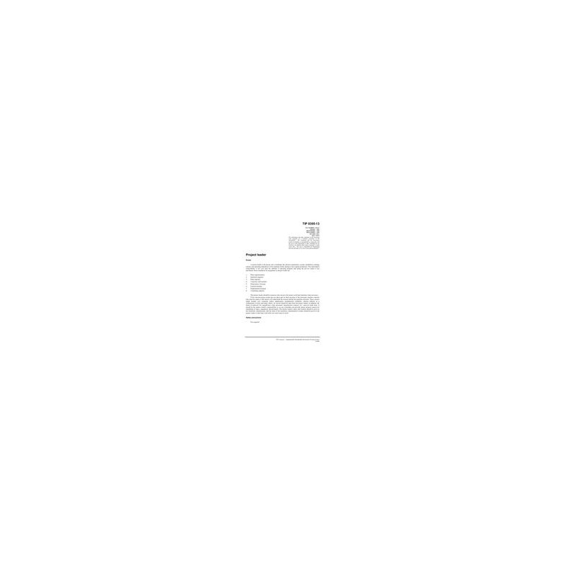 A project leader is the person who coordinates the advance preparation, receipt, installation, training,startup, and operating shakedown of the machine before putting it into regular production. This individual'sresponsibility is not over until the machine is operating properly and doing the job for which it was purchased.