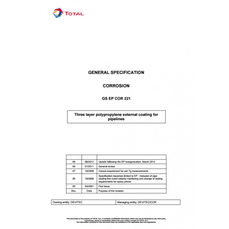 | Title : | THREE LAYER POLYPROPYLENE EXTERNAL COATING FOR PIPELINES | |