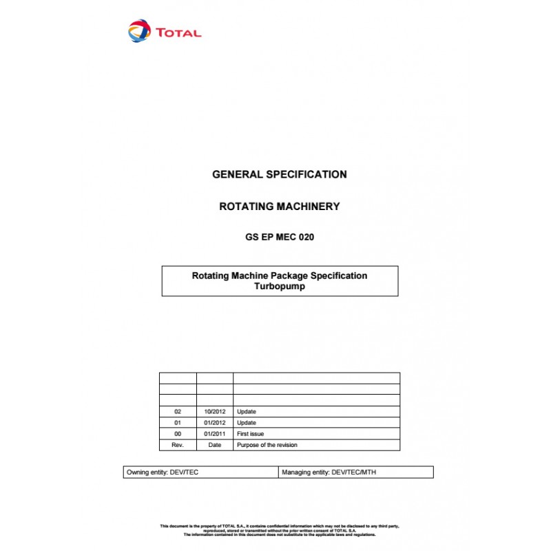 | Title : | ROTATING MACHINE PACKAGE SPECIFICATION TURBOPUMP | |