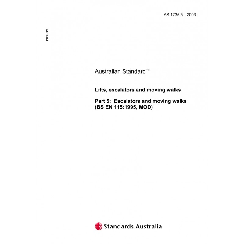 AS 1735.5-2003 [ Superseded ] Lifts, escalators and moving walks - Escalators and moving walks (BS EN 115:1995, MOD)